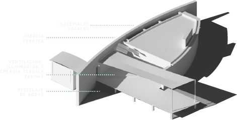 Proyecto cultural que se desplanta en la ladera de una cordillera icónica en el estado de Aguascalientes, dentro de un área natural protegida. Los retos principales de este proyecto fueron integrar las formas del edificio a la topografía y hacerlo energética e hídricamente autosuficiente. Se generaron dos ámbitos en el edificio, uno urbano (con vistas panorámicas a las poblaciones vecinas) y otro natural hacia un monumento natural llamado “El Picacho”, el cual además sirve como material didáctico, puesto que el uso principal del auditorio es para impartir clases de educación ambiental.